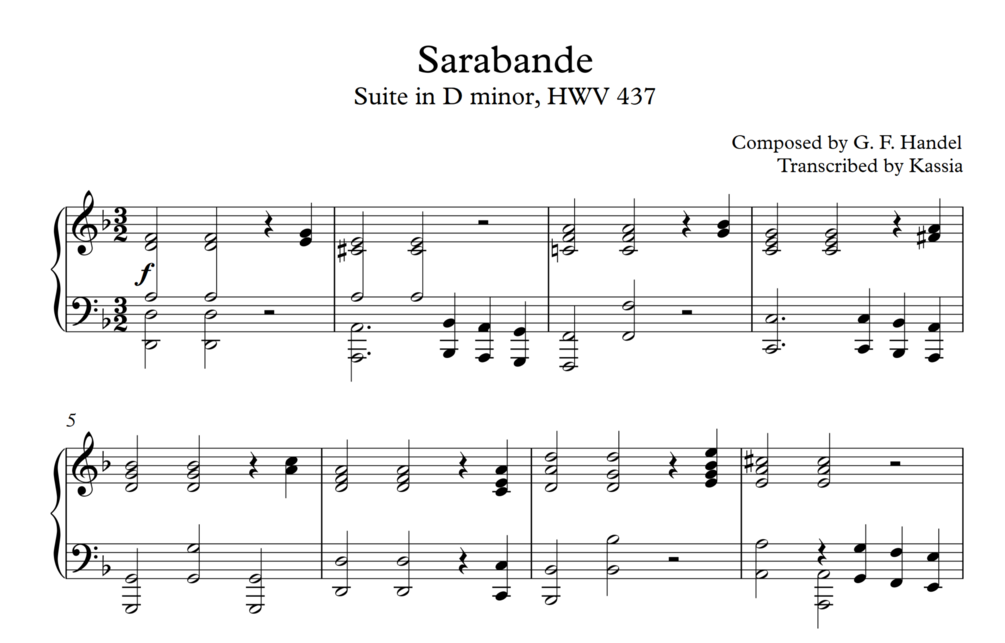 Handel - Sarabande (Piano Solo Sheet Music) (Transc. Kassia)